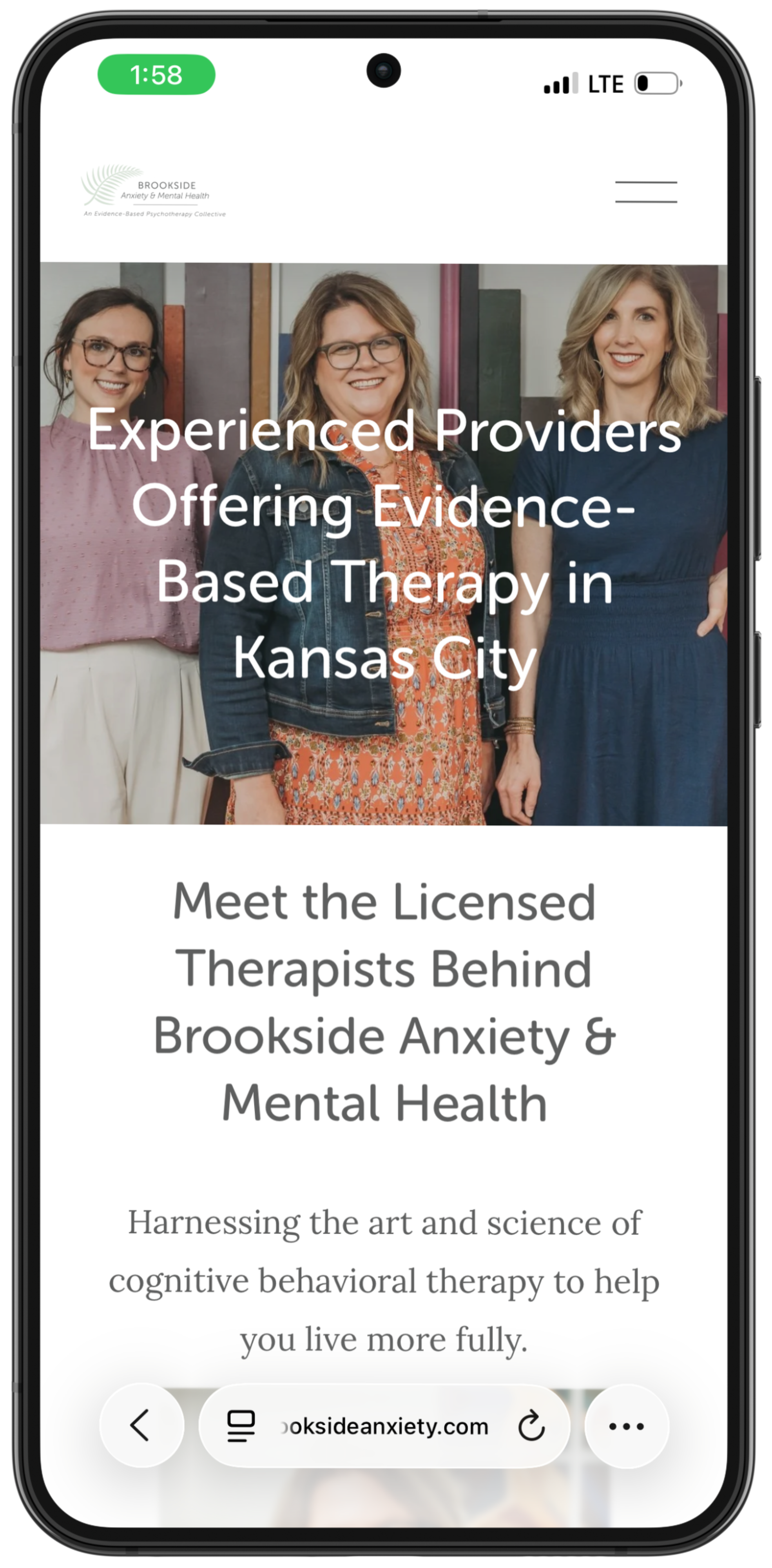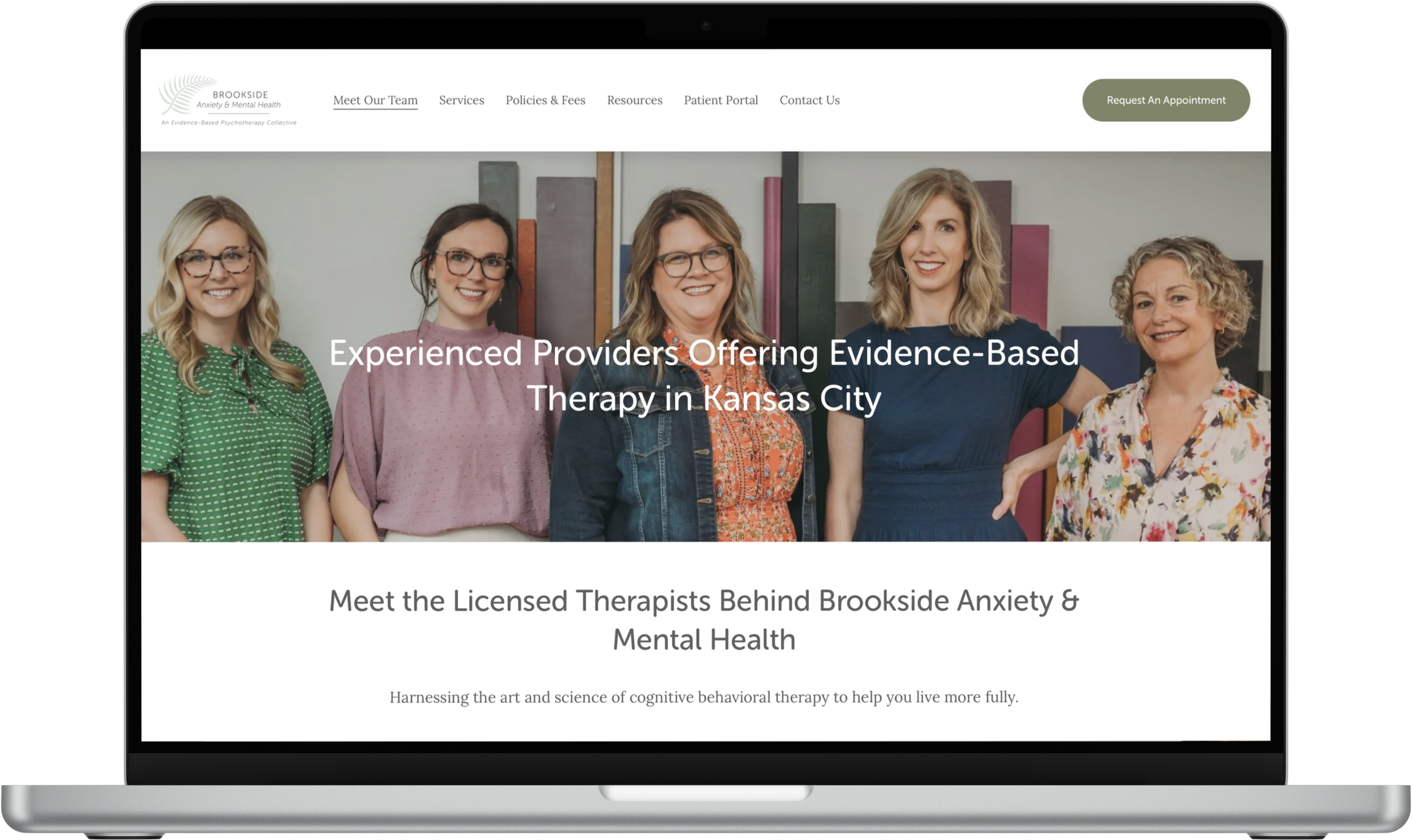 Brookside Anxiety & Mental Health is a Kansas City–based therapy practice offering evidence-based counseling for anxiety, trauma, and related mental health concerns. They needed a calm, professional website that clearly communicates their approach, builds trust with prospective clients, and makes it easy to request an appointment.