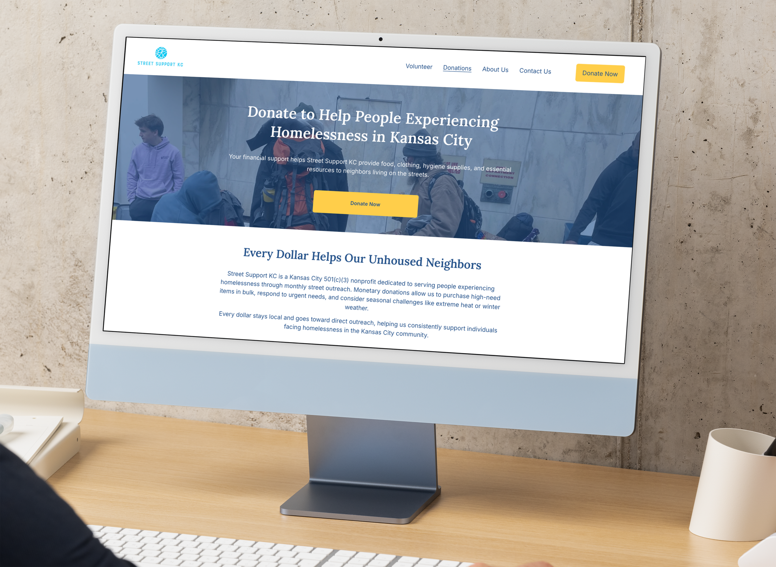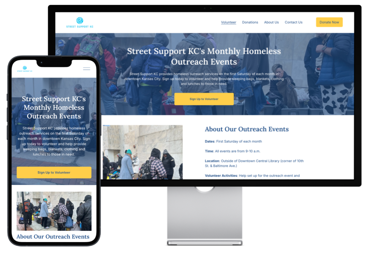 A Kansas City nonprofit serving the homeless community. Their website helps promote events, collect donations, and recruit volunteers.